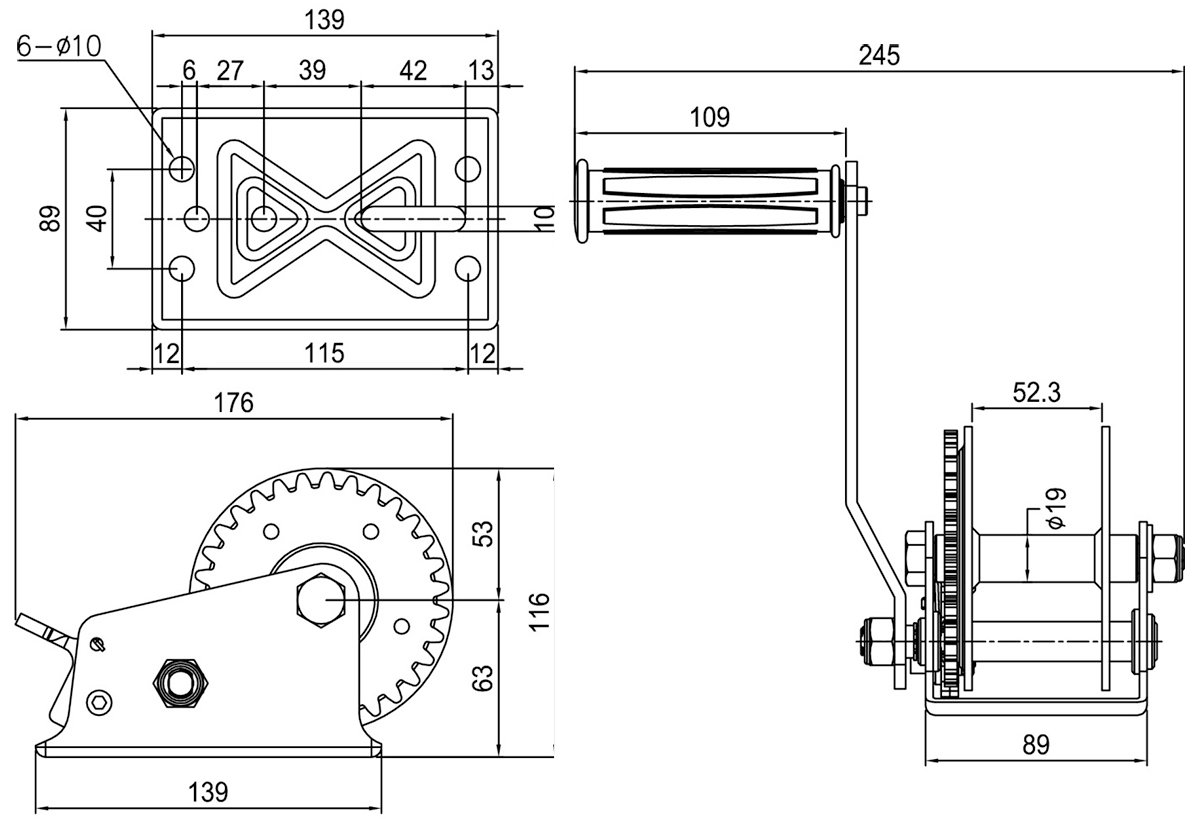 Thông số kích thước tời kéo tay HW-0600
